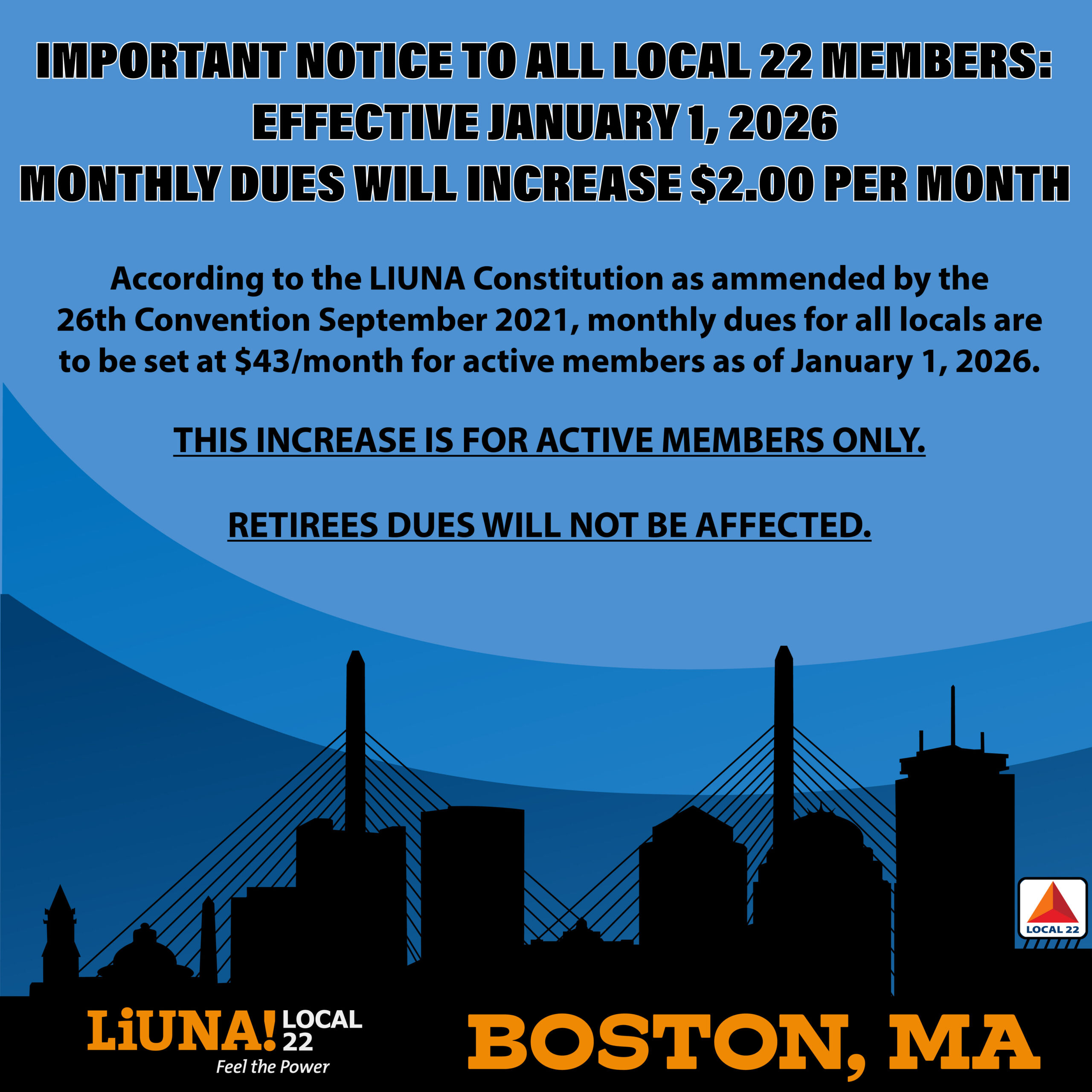 As of January 1, 2026- Union Dues Increase $1 to $42/Month